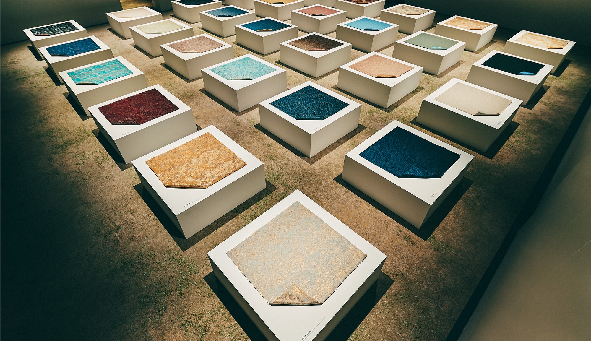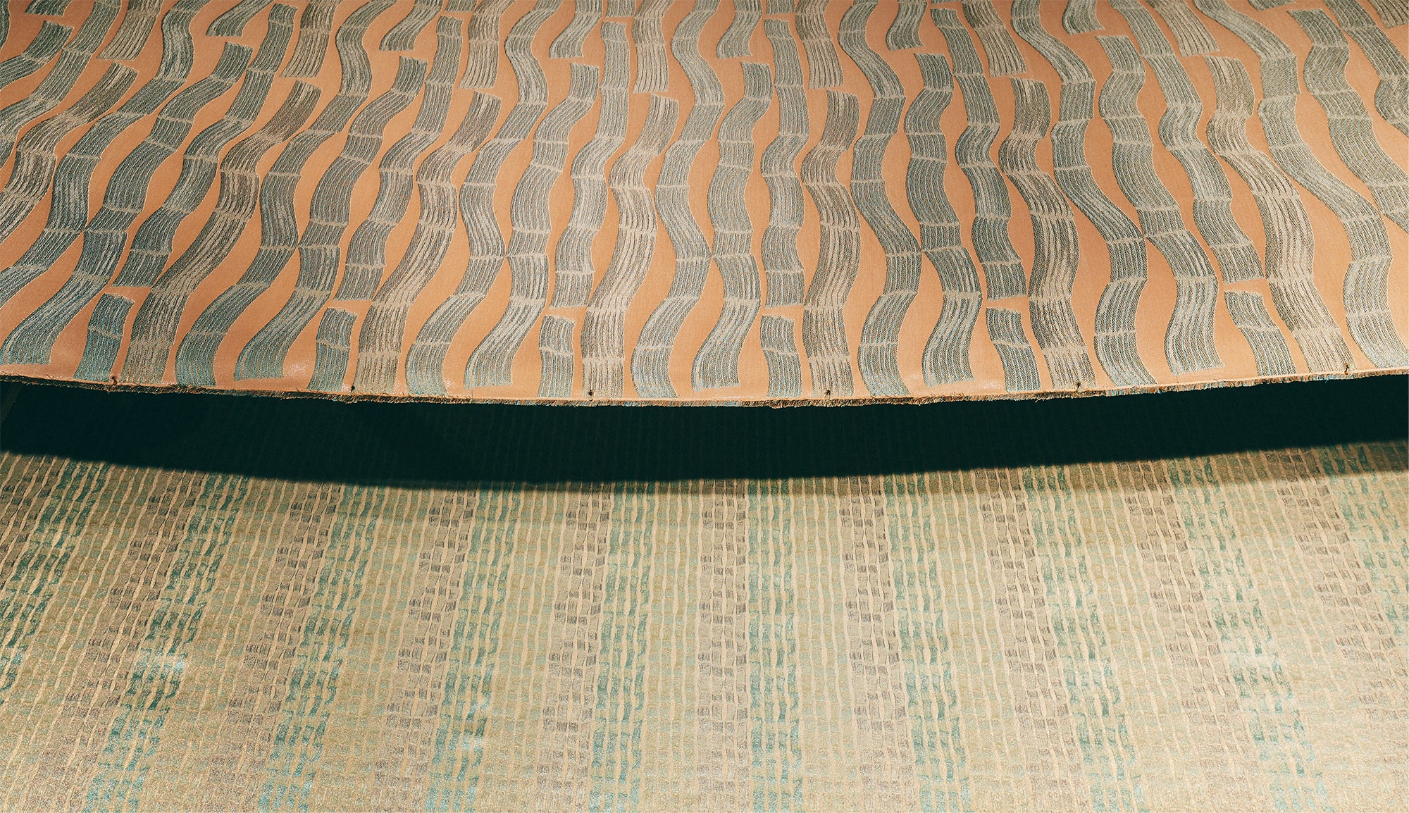 This exhibition was the result of Mae Engelgeer’s one-month artist in residence project that started in July 2019. During her time, she collaborated with HOSOO craftsmen and explored new boundaries of Nishijin textile expression. This exhibition’s title, Colortage is the combination of the two words “color” and “heritage,” which represent a new type of textile. “Color” represents Mae Engelgeer’s unique color philosophy. “Heritage” represents the historical culmination of Nishijin textile.