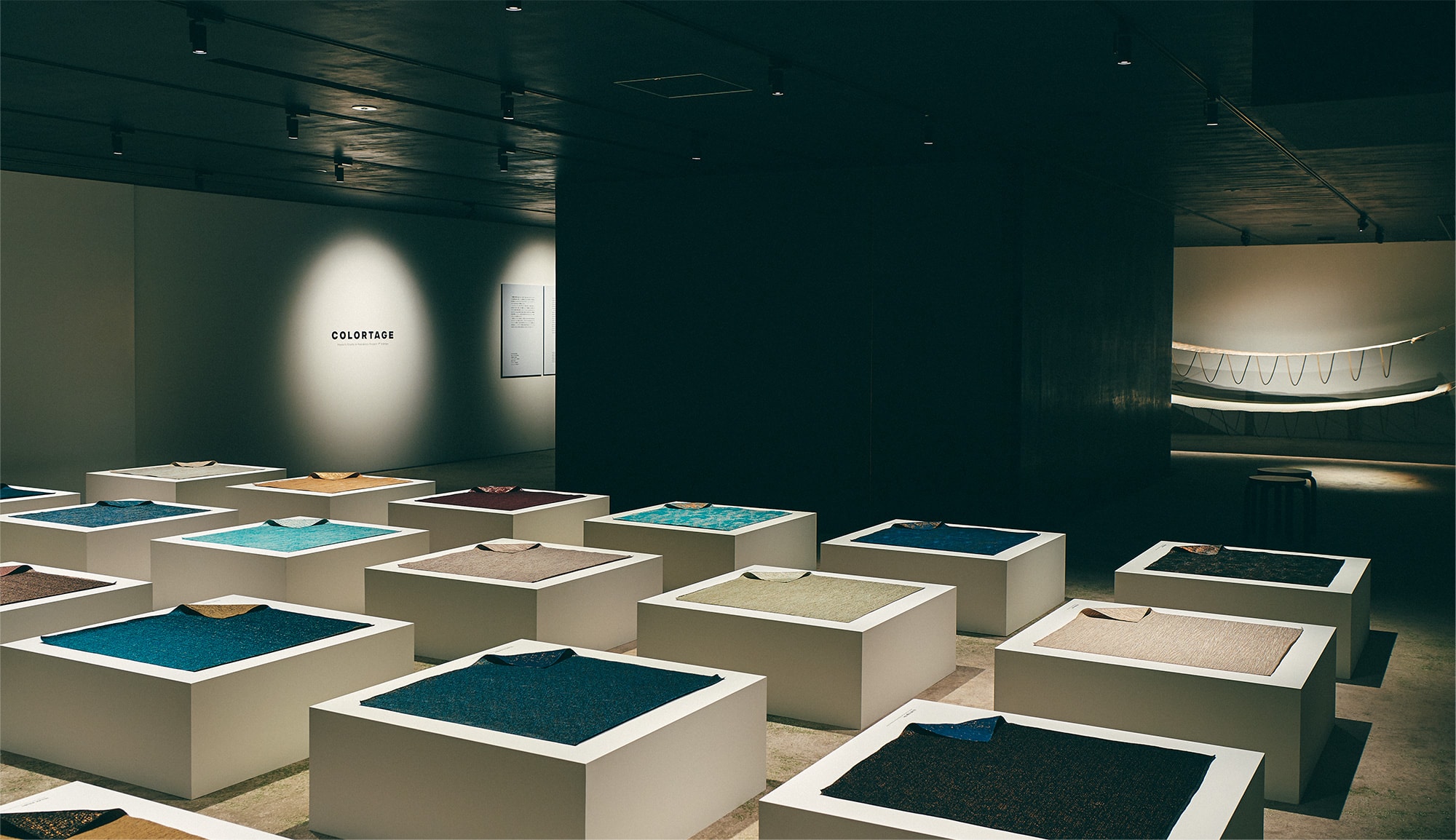 From the first artist in residence project by HOSOO Co., Ltd., held the Colortage exhibition that showcased the works by Dutch textile designer, Mae Engelgeer. Mae has gained worldwide attention with her unique textile philosophy. With her distinctive sense of color and innate knowledge, she has a special gift of designing minimalistic textiles that are full of intuitive sensibilities.