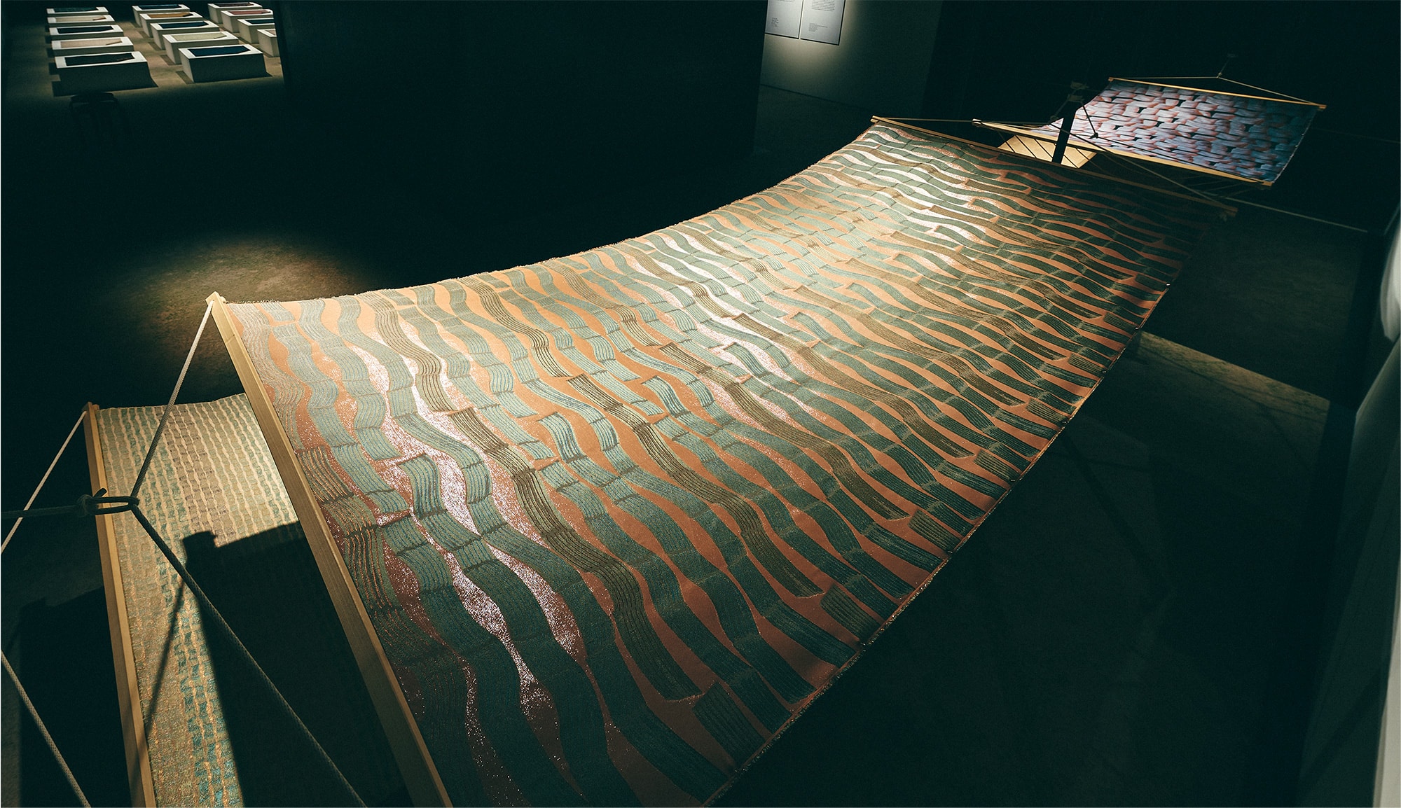 As a part of this exhibition, the Sinuous textile work was displayed as the fruits of her residency in an installation. In addition, HOSOO’s 2020 textile collection that stems from the collaboration between Mae Engelgeer and HOSOO was on display.